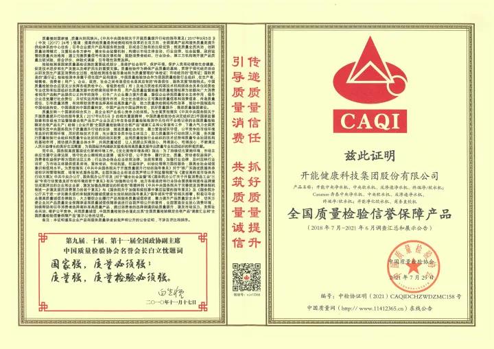 質量作為人類社會的的不懈追求,不僅反映一個企業和產業的核心競爭力,同時反映一個國家的綜合實力。自創始之日起,開能健康便始終秉持誠信經營、質量為本的發展理念,不斷完善質量管理體系,履行企業質量責任。