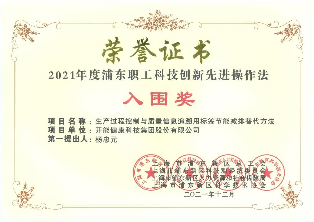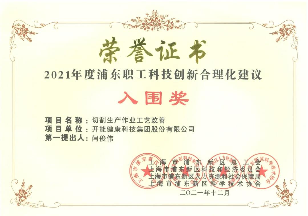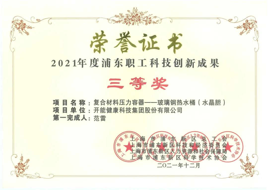 2022-01-27日前,在2021年度浦東職工科技創新成果、先進操作法、合理化建議及工人發明家、科技創新英才評選活動中,開能健康科技集團股份有限公司(下文簡稱:開能健康)共獲得7項獎項,展示了開能工匠不斷進取的精神,體現了開能智造不斷提升的標準。
