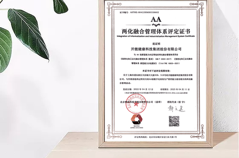 近日,開能健康順利通過國家《信息化和工業化融合管理體系要求》(GB/T23001-2017)和《信息化和工業化融合管理體系 新型能力分級要求》(T/AIITRE1003-2021)雙項認證,獲得AA級《兩化融合管理體系評定證書》,是國家對開能健康兩化融合成果的高度認可,也標志著開能在兩化融合方面進入了新的階段。