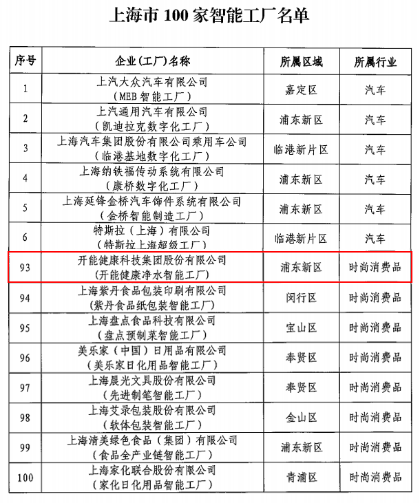 2023-02-20繼2022年開能健康科技集團股份有限公司(以下簡稱“開能集團”)被評為上海市綠色工廠后,2023年開局之際,開能集團憑借凈水智能工廠成功入選“上海市100家智能工廠”名單。這標志著在開能集團在智能制造、綠色制造領域的成果得到了上海市政府的充分肯定。