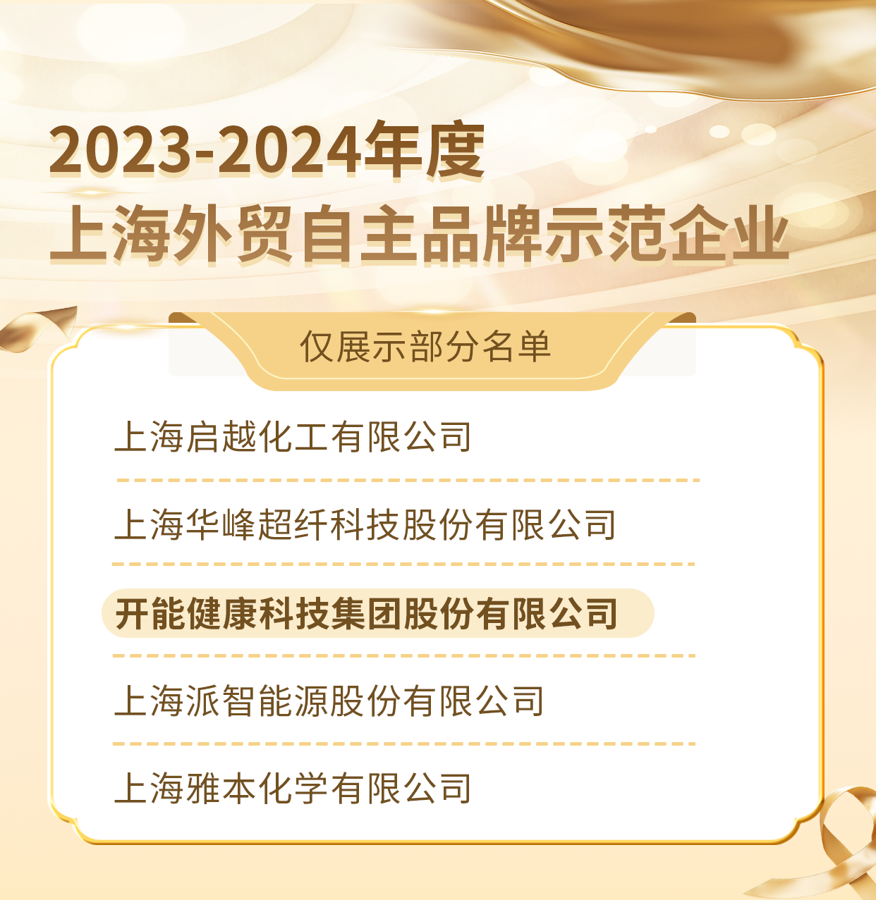 近日,“2023-2024年度上海外貿自主品牌示范企業”名單正式公布。開能健康科技集團股份有限公司(以下簡稱“開能健康”)憑借強勁實力再次成功入選,這也是其連續第三次獲此殊榮,彰顯了企業在技術創新、產品多元化和國際市場拓展方面的卓越成就。