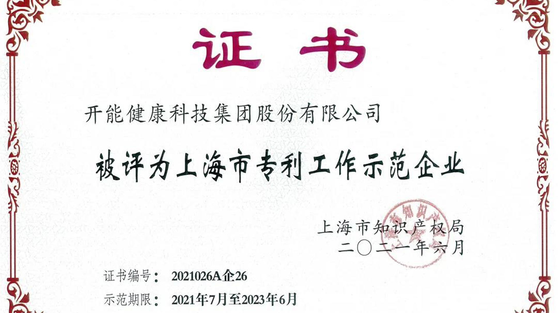 開能健康 | 馭創新之力,開能健康榮獲上海市專利工作示范企業榮譽稱號