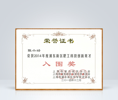 2014年榮獲2014年度浦東新區職工科技創新英才“入圍獎”