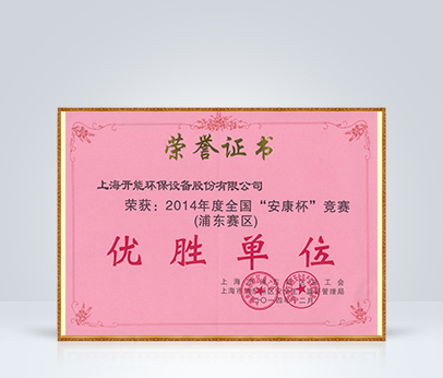 2014年榮獲2014年度全國“安康杯”競賽(浦東賽區)優勝單位榮譽證書