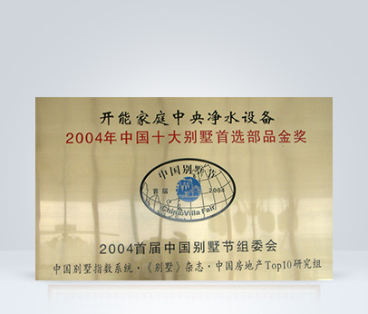 2004年開能家庭中央凈水設(shè)備榮獲中國十大別墅首選部品金獎