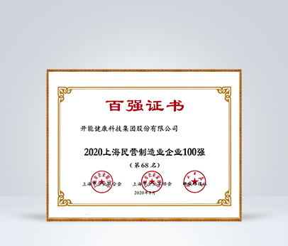 2020年被評為上海民營制造業企業100強