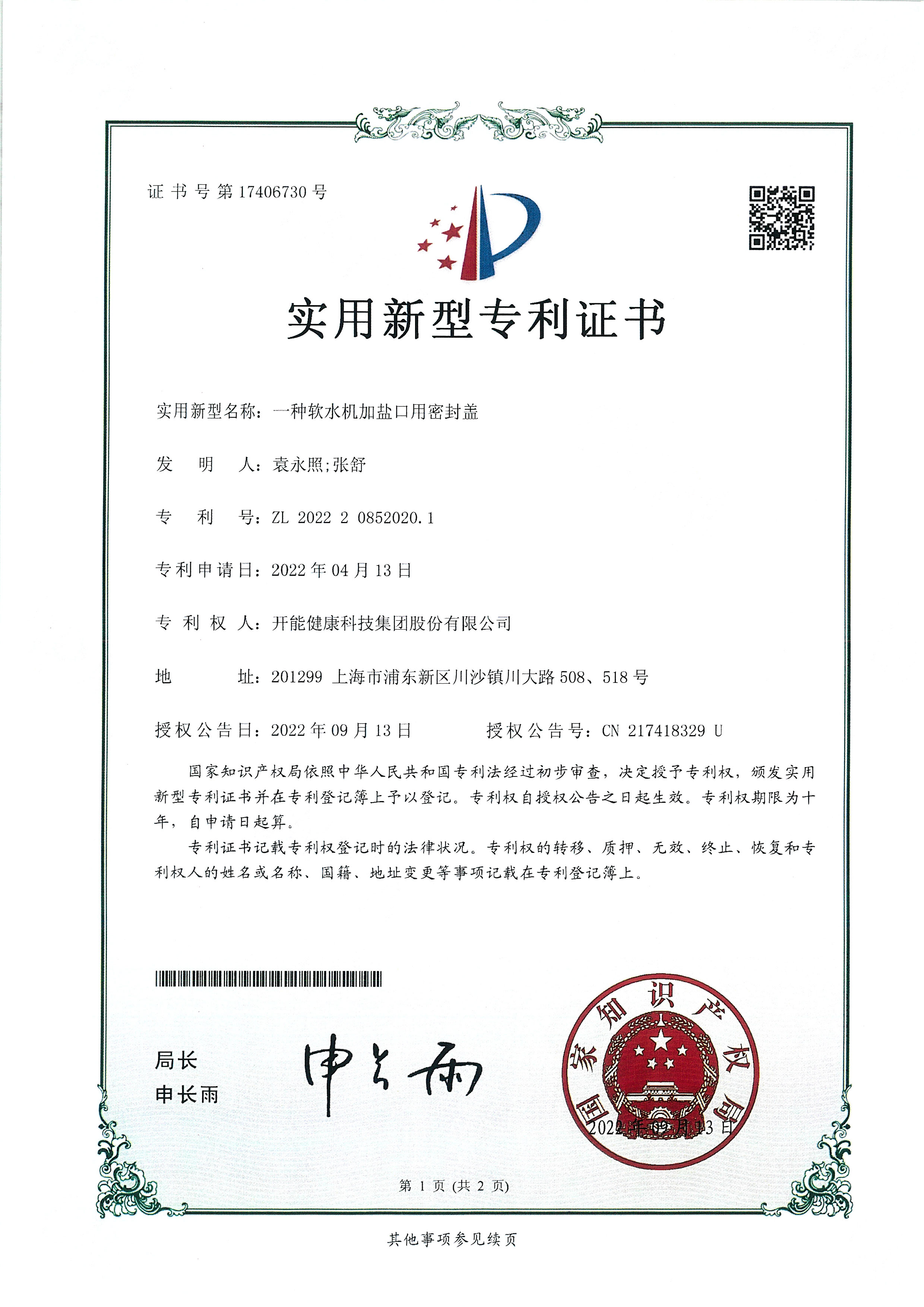 一種軟水機用加鹽口密封蓋