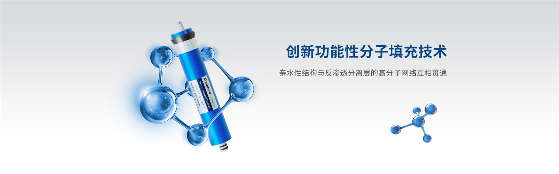 創(chuàng)新功能性分子填充技術(shù),親水性結(jié)構(gòu)與反滲透分離層的高分子網(wǎng)絡(luò)互相貫通